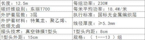 c柔性發熱電纜電阻值范圍:5-8Ω/M;9-20Ω/M;23-25Ω/M;47-150Ω/M。